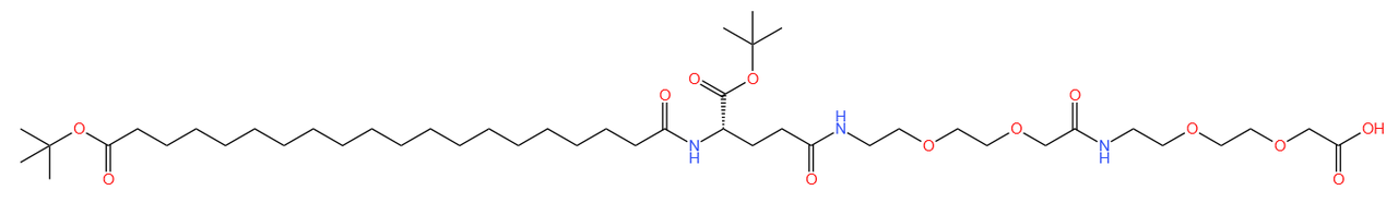 替爾泊肽C20脂肪酸側鏈是合成禮來公司開發的GLP-1/GIP受體雙重激動劑的關鍵中間體之一,該激動劑可以用于2型糖尿病、糖尿病相關的神經病變和肥胖癥的研究。